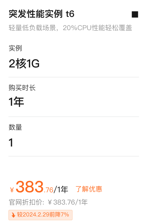 相关服务: 迎江ECS突发性能t6费用